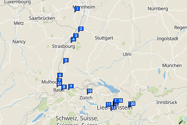 | Meisten Bundesländer pro Tag: | 8 (Rheinland-Pfalz : Germany, Baden-Württemberg : Germany, Basel Landschaft : Switzerland, Aargau : Switzerland, Zürich : Switzerland, St. Gallen : Switzerland, Vorarlberg : Austria, Grand-Est : France) am 30.05.2013 Hinweis: Eingenommen Locationless Caches. |